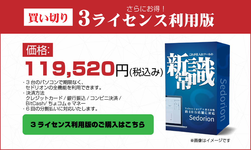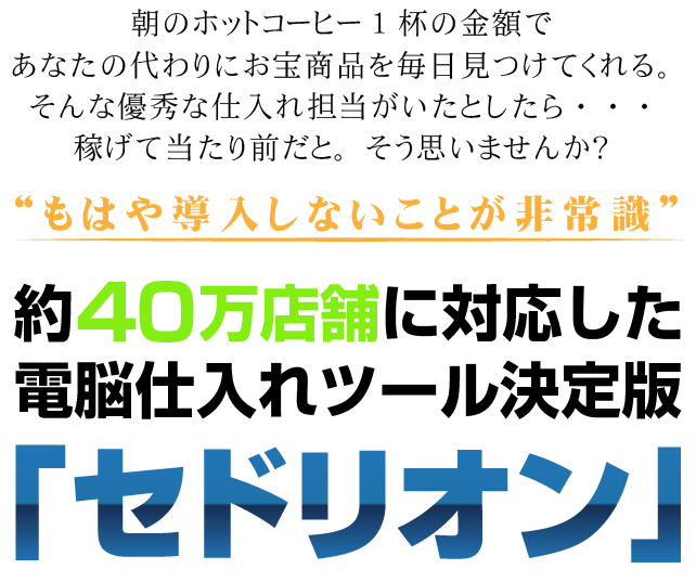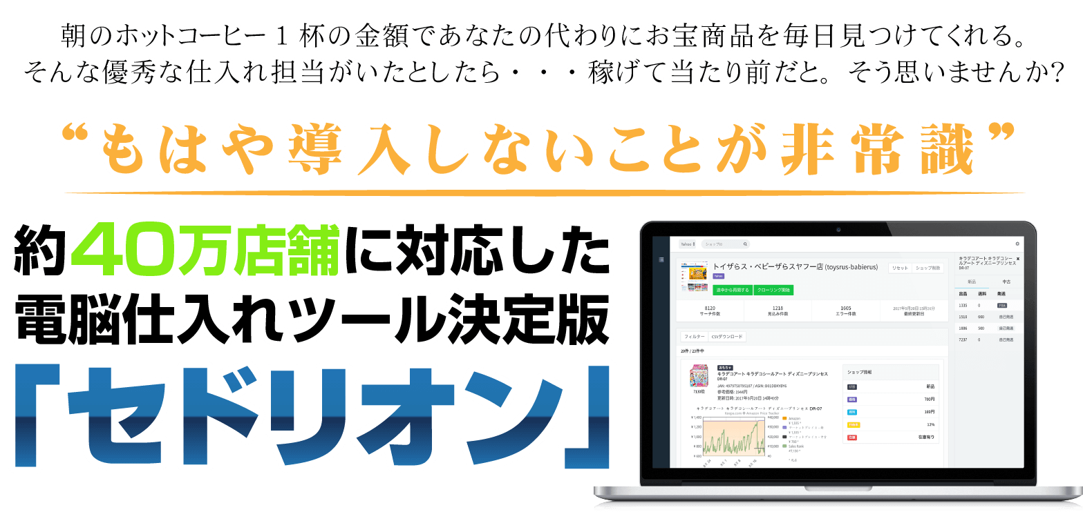 セドリオンはYahooショップ・楽天市場を対象とした電脳仕入れツールです。