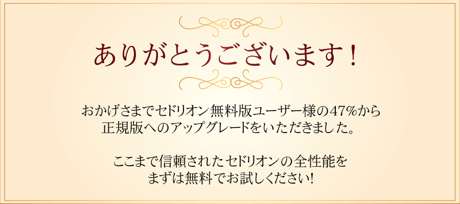 お試しは無料です!迷う前に今すぐセドリオンの性能をご体感ください。